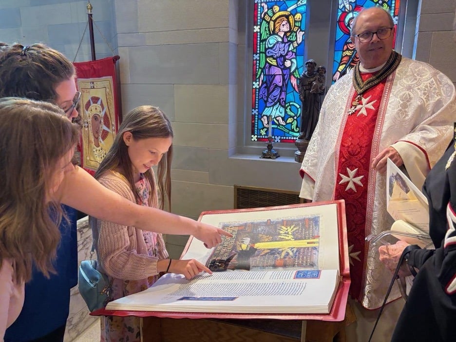 St. Ann wishes to express immense gratitude to those who made possible the magnificent gift of the St. John Bible Heritage Edition, in honor of esteemed brother and Conventual Chaplain ad honorem Rev. Eric Hollas, Order of Saint Benedict, including Joseph & Gail Berardino, Paul & Anne Krump, Jean & Debbie Brunel and Suzy Moran.